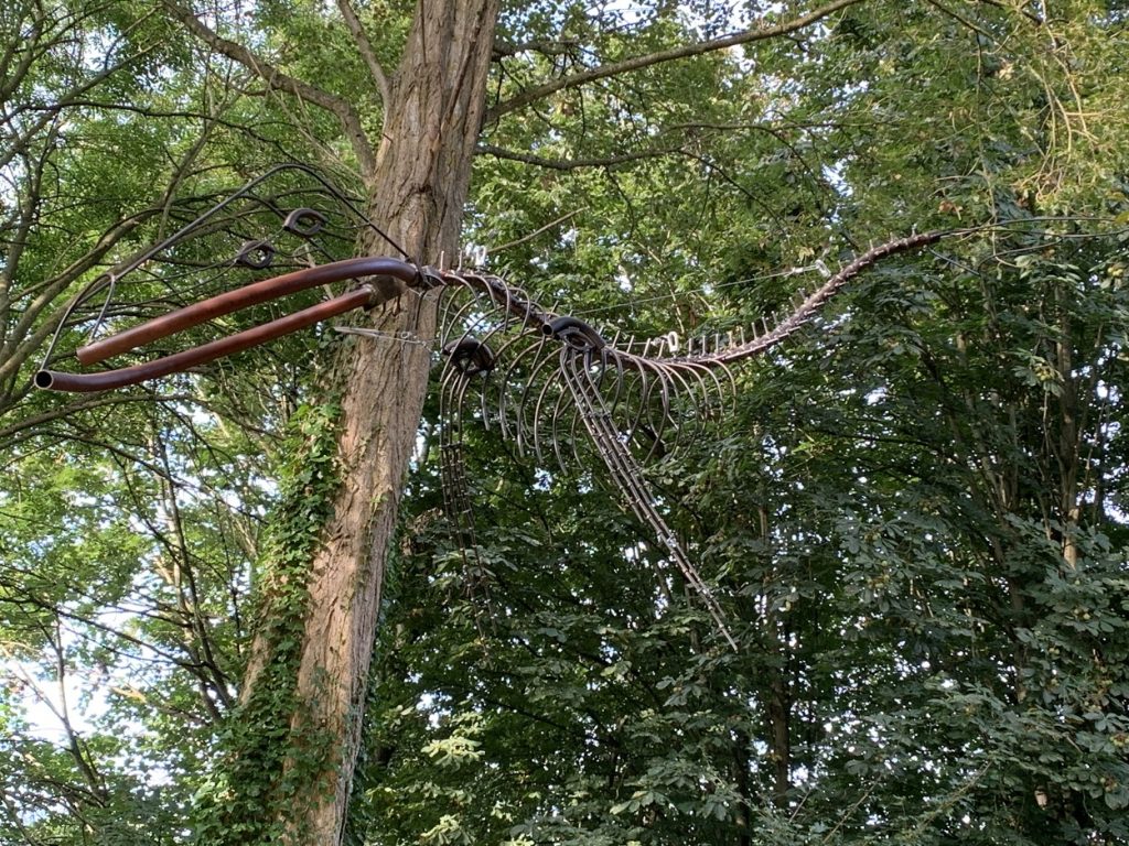 Mr Whale II is suspended from a tree canopy during the Great Big Green Week at Fishponds, Eynsham, Oxfordshire, 18th–26th September 2021. The event formed a part of a national Great Big Green Week in the lead-up to the 2021 United Nations Summit on Climate Change (COP26).